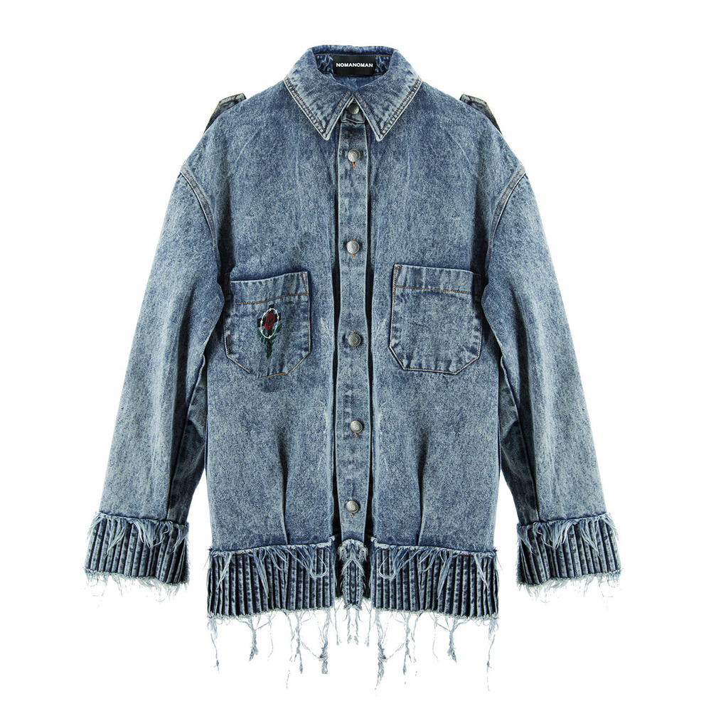 PLEATED FRAYED EDGE BLEACHED DENIM SHIRT材质:100%纯棉